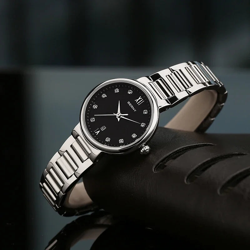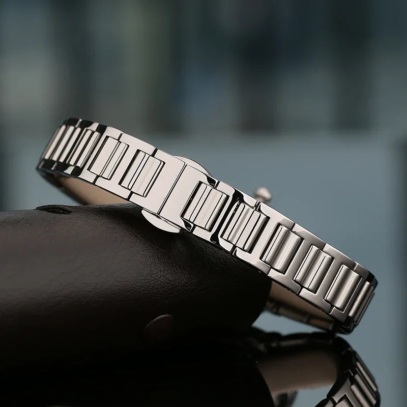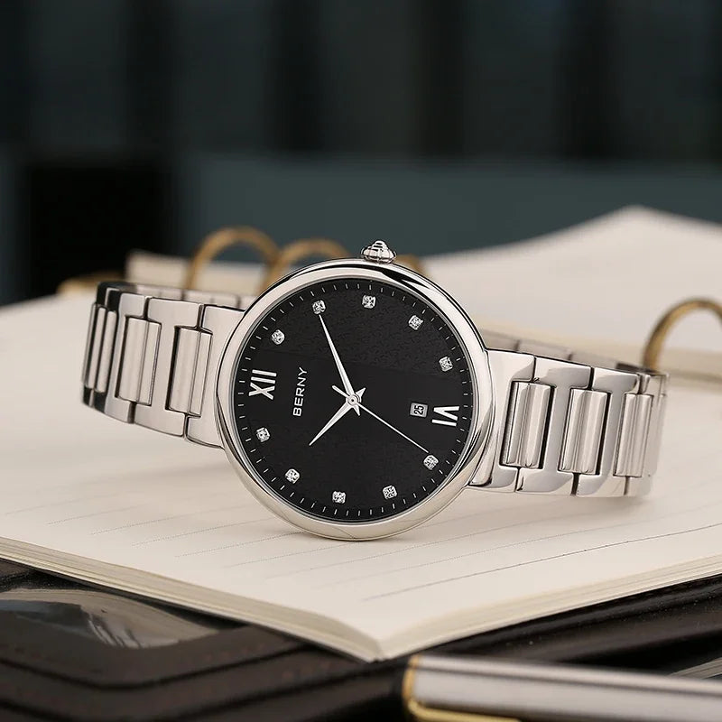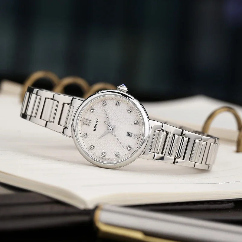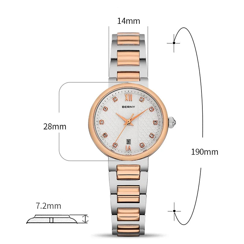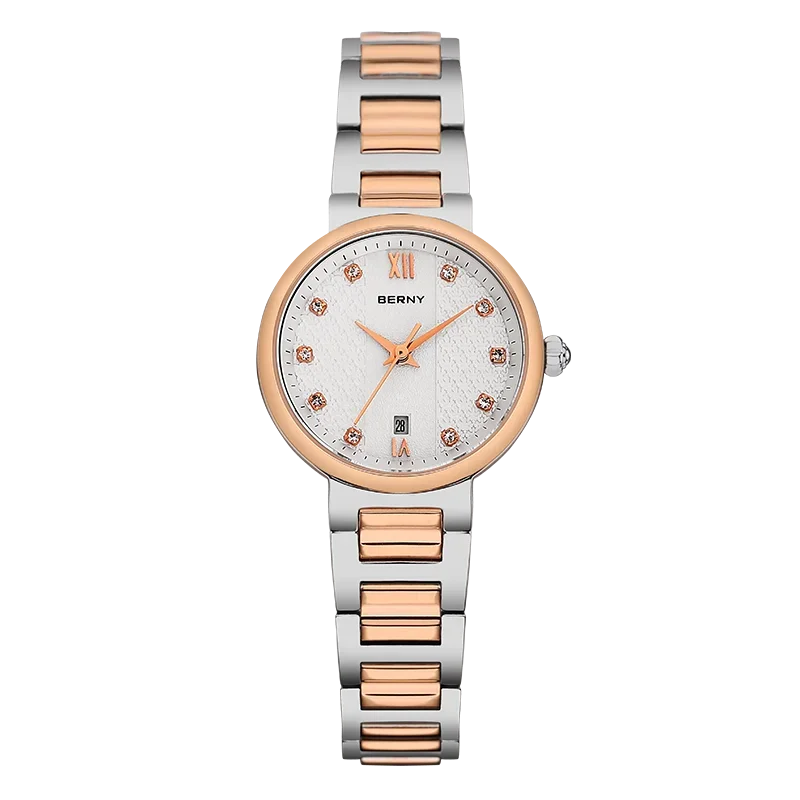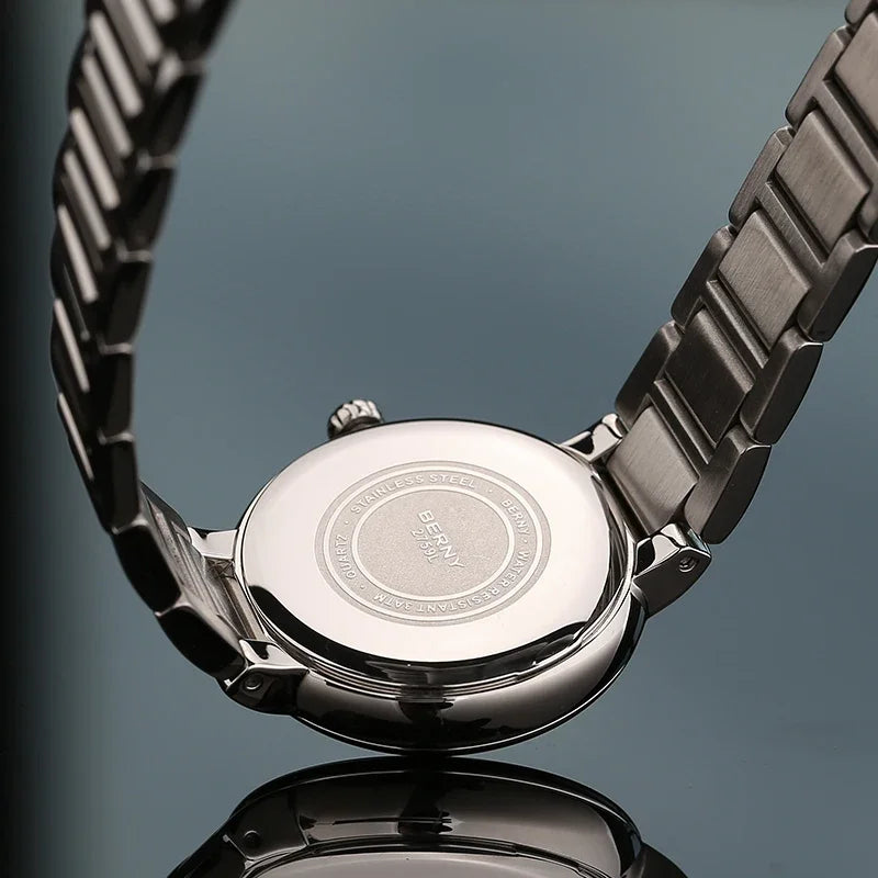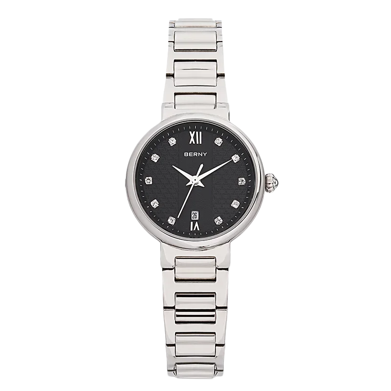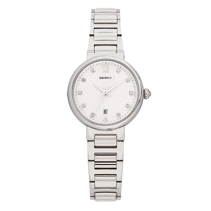 שעון Montero Berny MetroLux משלב עיצוב נקי ואלגנטי. גוף נירוסטה דק בעובי 7.2 מ"מ וקוטר 28 מ"מ מעניק מראה מינימליסטי ומעודן. עם זכוכית ספיר נגד שריטות. מנגנון Quartz יפני מדויק מבטיח אמינות לשימוש יומיומי. רצועת נירוסטה מעוצבת ברוחב 14 מ"מ מעניקה תחושת נוחות ועמידות. השעון כולל תאריך, עמידות מים של 3ATM ומתאים לנשים שמחפשות פריט אלגנטי, עדין ומודרני שמתאים לכל לבוש.