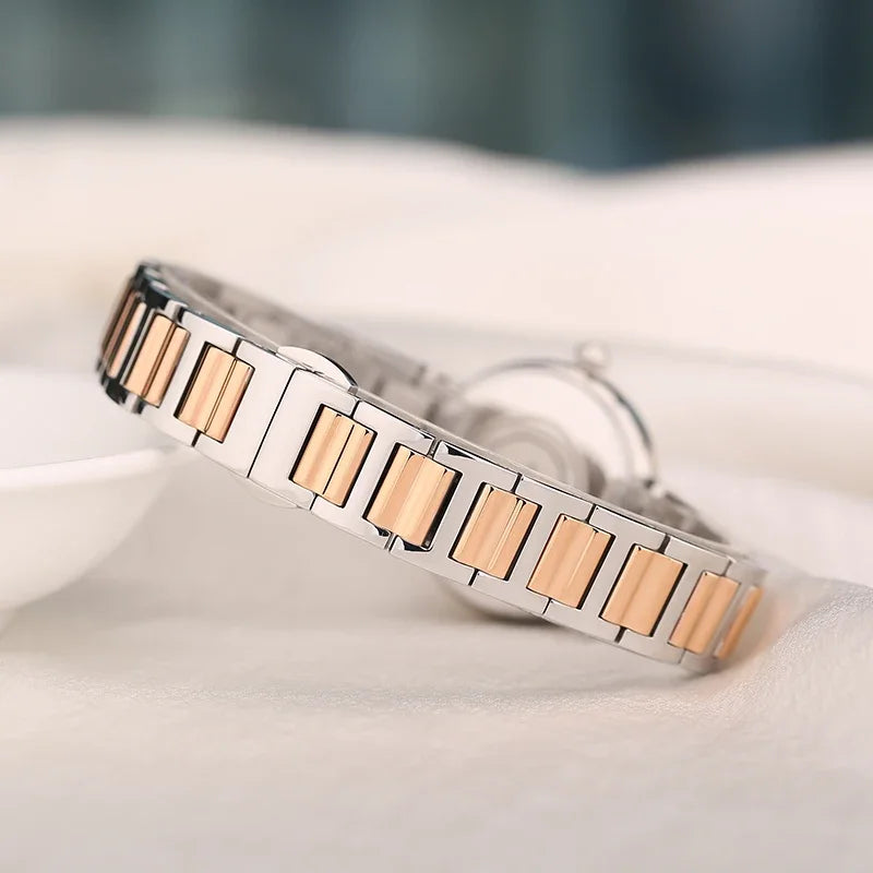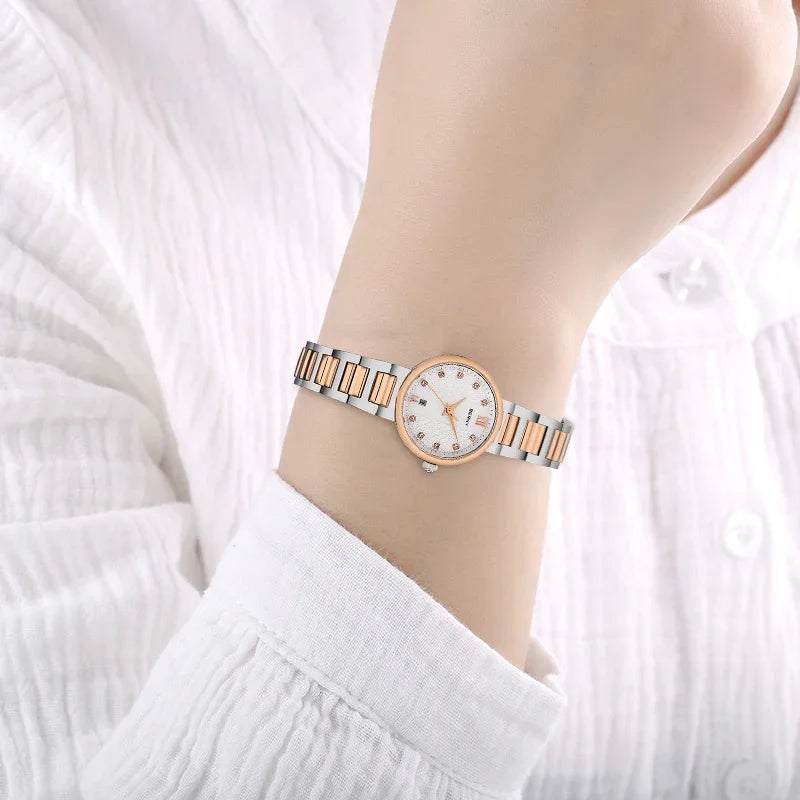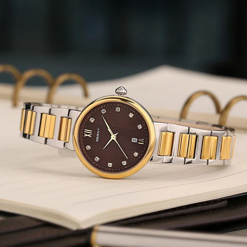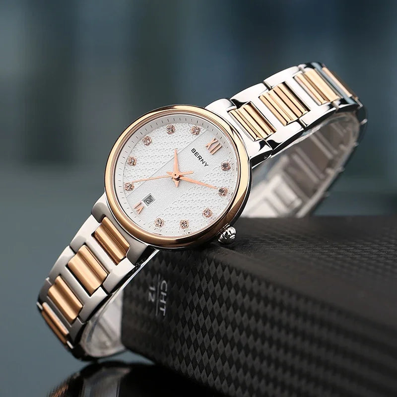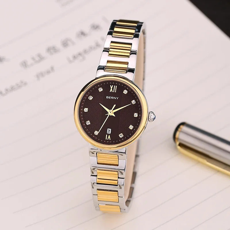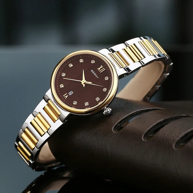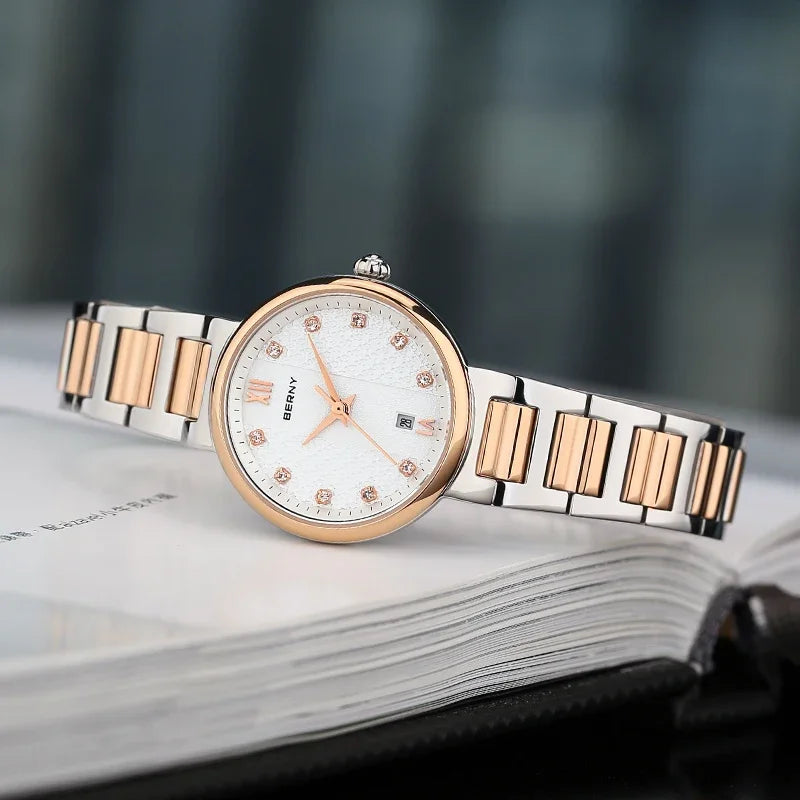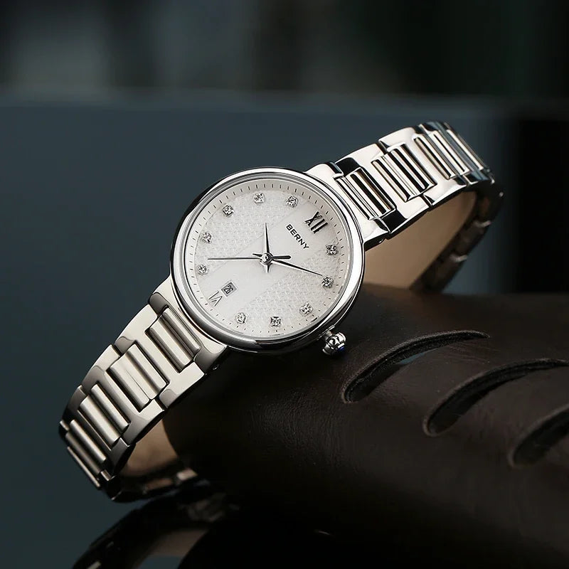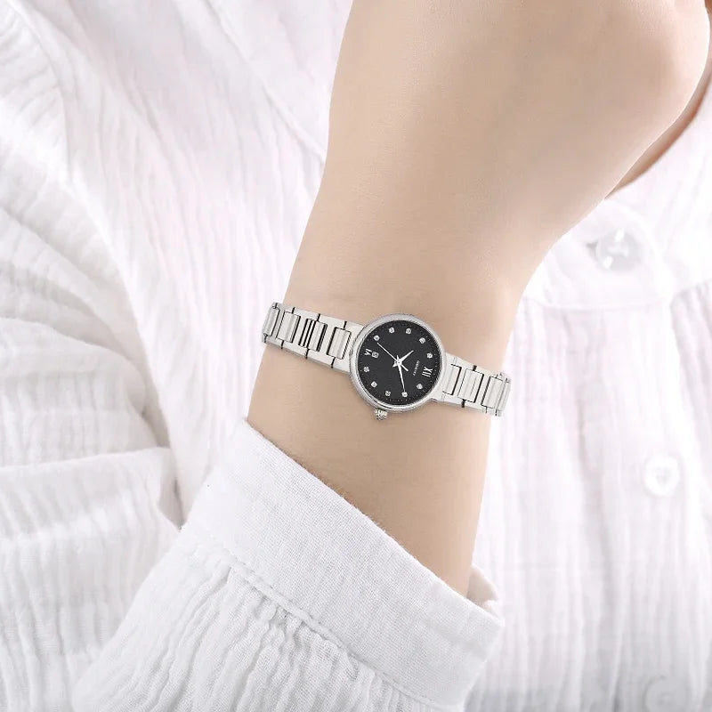 שעון Montero Berny MetroLux משלב עיצוב נקי ואלגנטי. גוף נירוסטה דק בעובי 7.2 מ"מ וקוטר 28 מ"מ מעניק מראה מינימליסטי ומעודן. עם זכוכית ספיר נגד שריטות. מנגנון Quartz יפני מדויק מבטיח אמינות לשימוש יומיומי. רצועת נירוסטה מעוצבת ברוחב 14 מ"מ מעניקה תחושת נוחות ועמידות. השעון כולל תאריך, עמידות מים של 3ATM ומתאים לנשים שמחפשות פריט אלגנטי, עדין ומודרני שמתאים לכל לבוש.