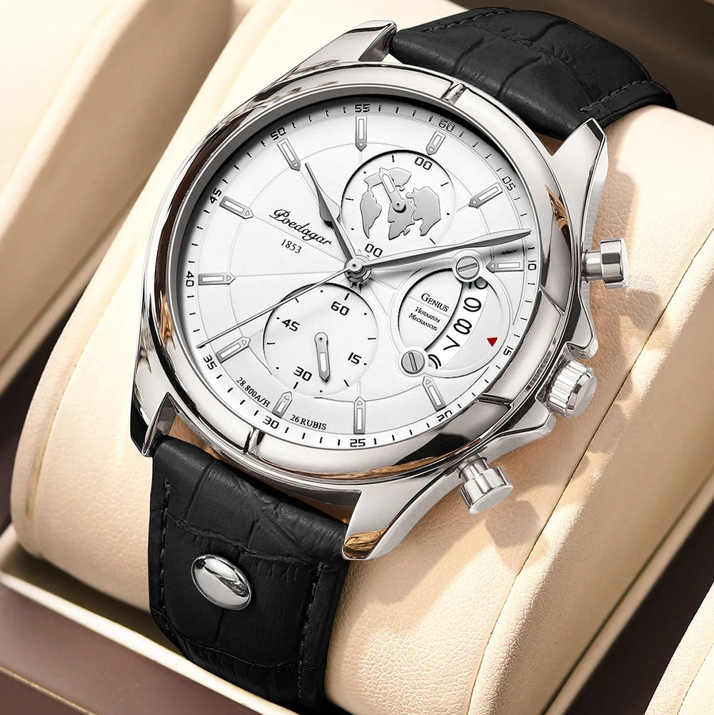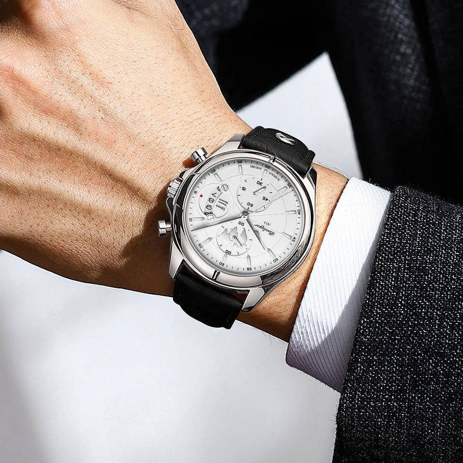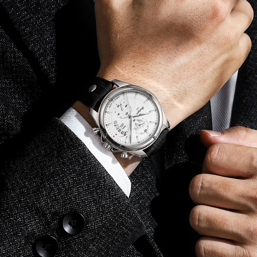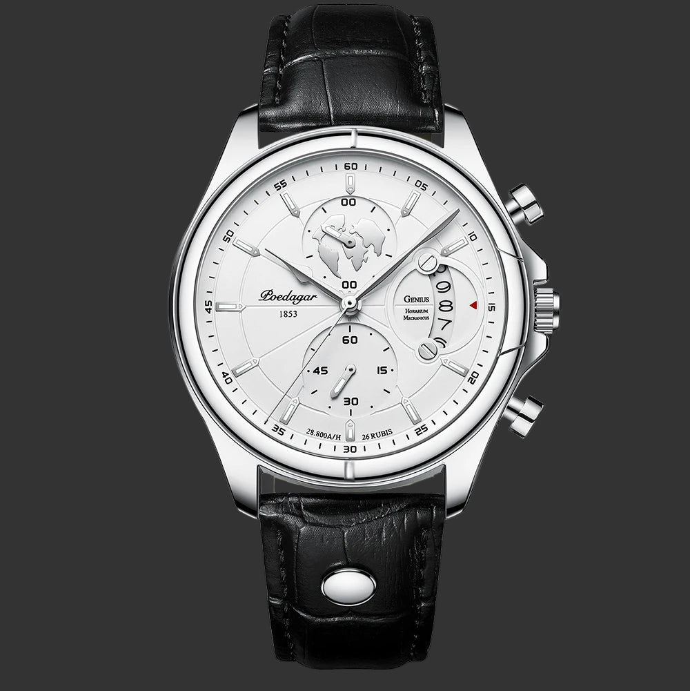 פונקציות מתקדמות: כרונוגרף מלא, תאריך אוטומטי, מחוגים זוהרים בלילה.