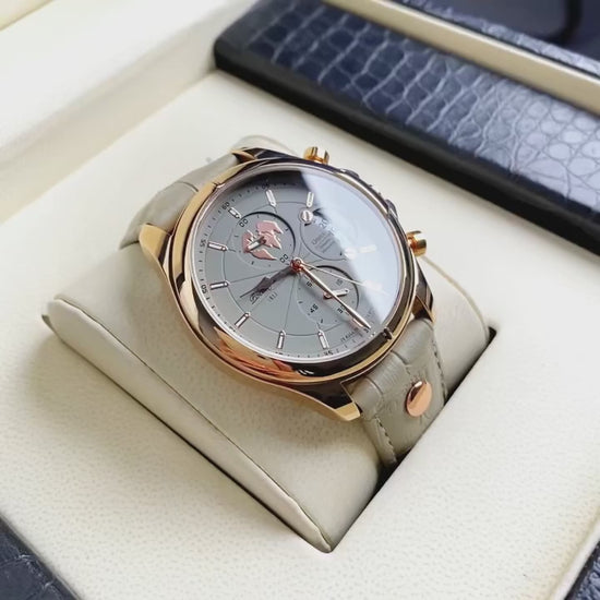 שעון יוקרה מרשים בעיצוב אלגנטי עם נוכחות מכובדת וסטייל מודרני. שילוב של עיצוב נקי, לוח מאסיבי ורצועת עור איכותית