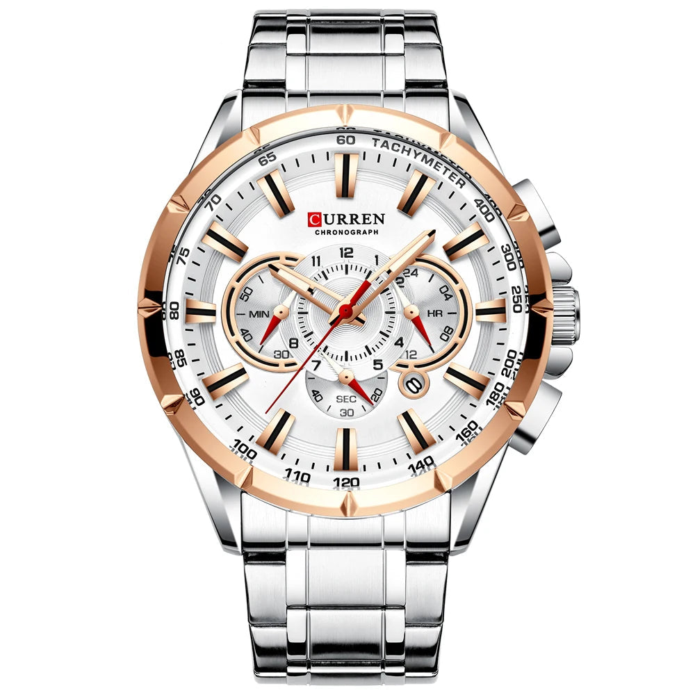 שעון יוקרתי ומרשים המשלב עיצוב ייחודי ואלגנטי עם נוכחות. מנגנון קוורץ איכותי.