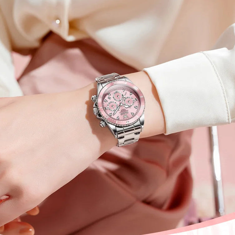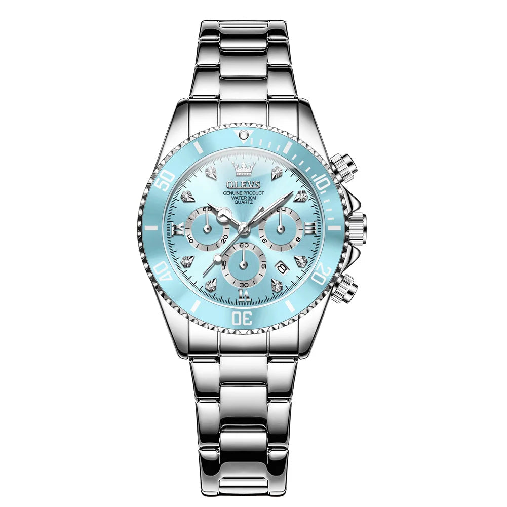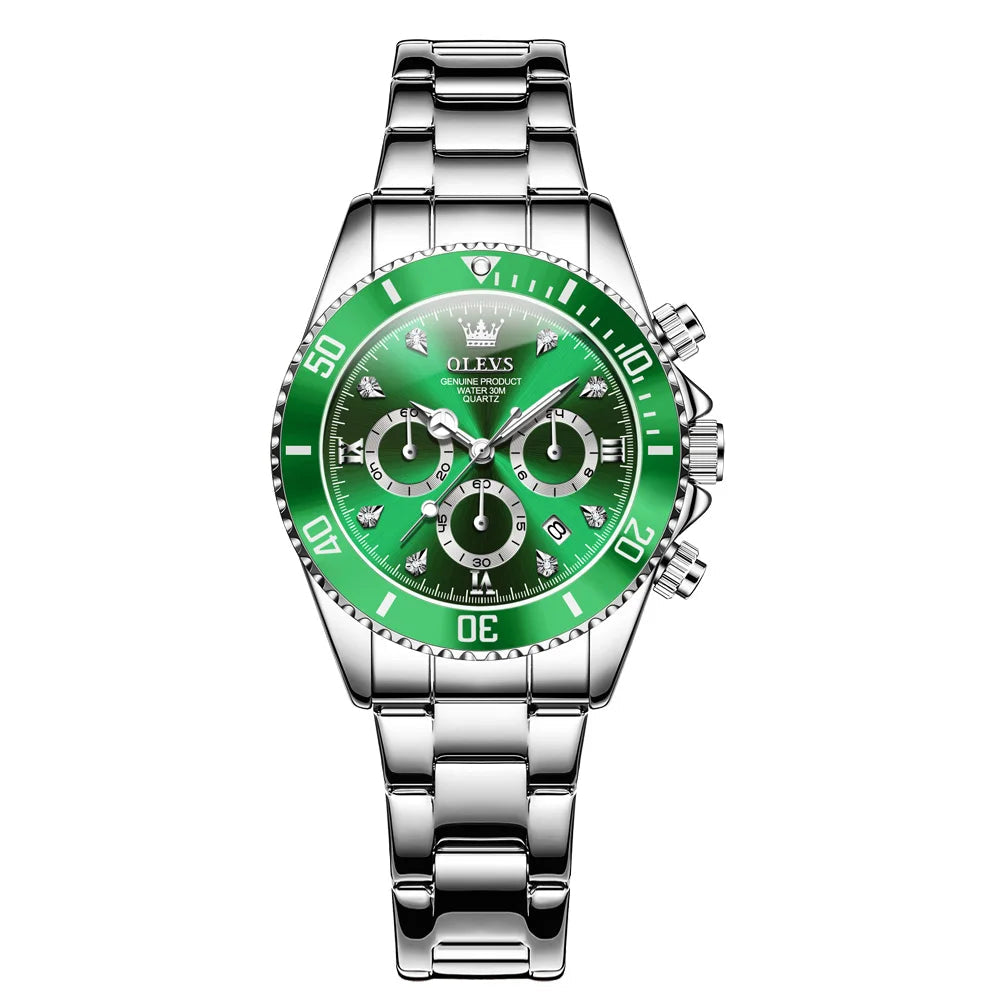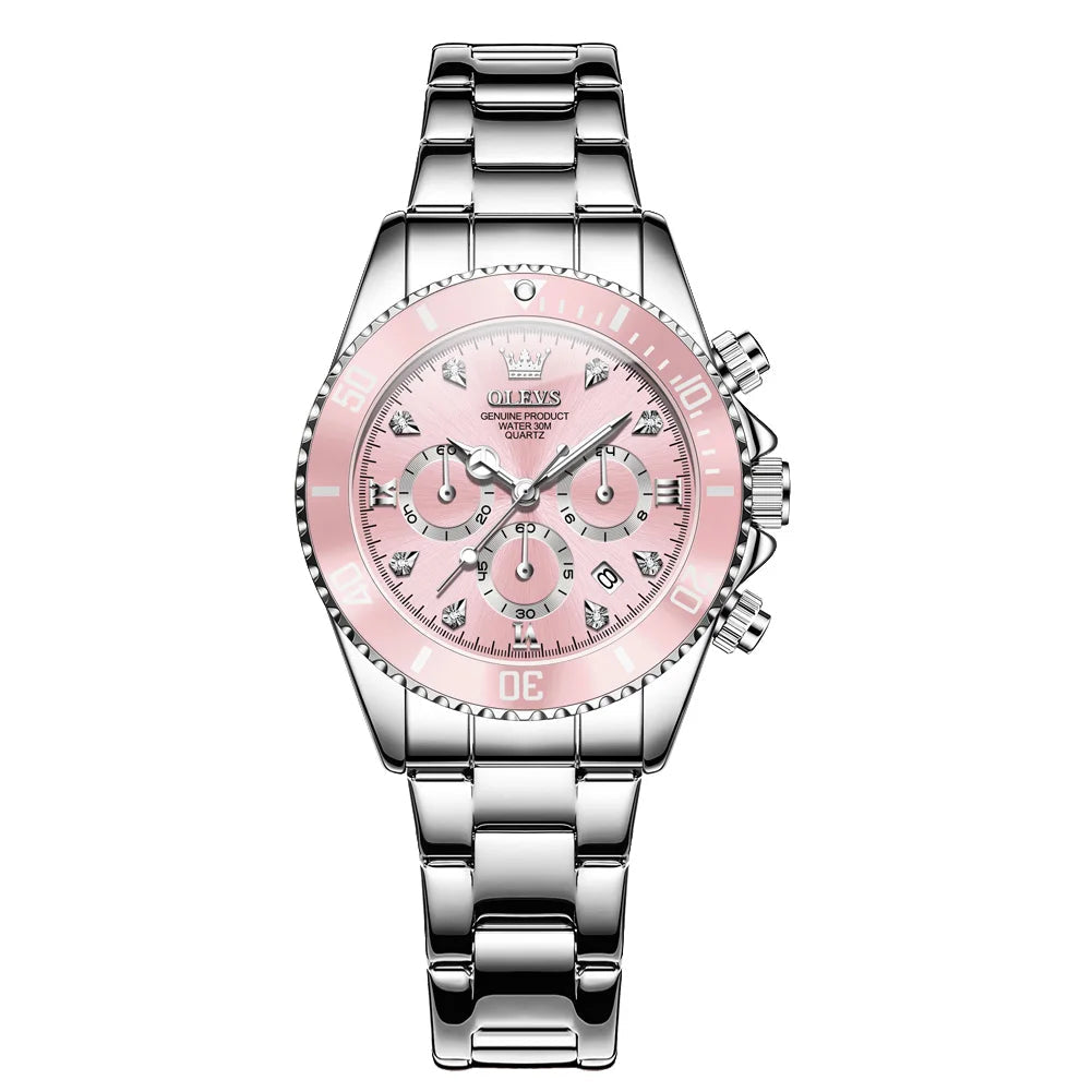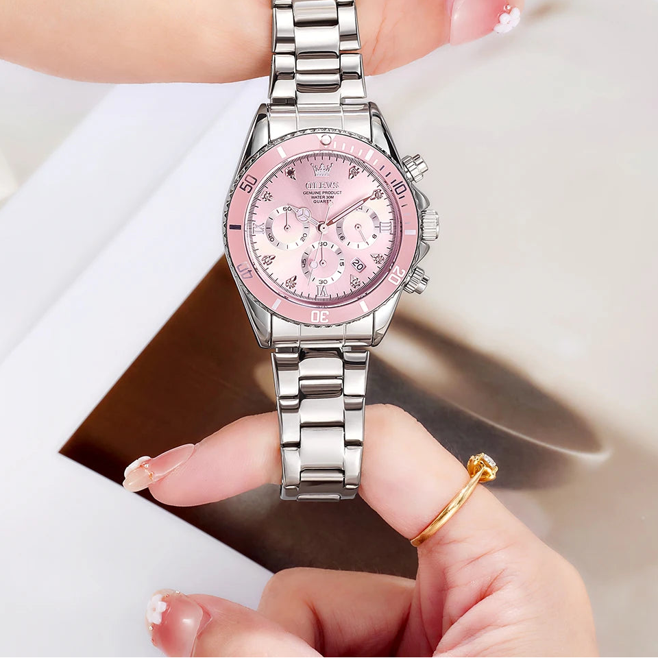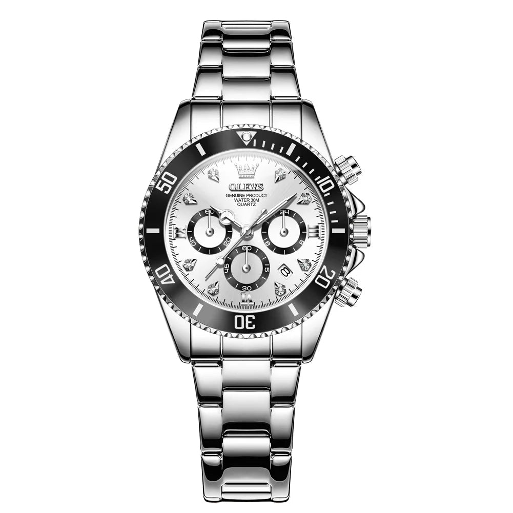 מנגנון קוורץ מדויק עם תצוגת תאריך אוטומטית וכרונוגרף מלא.