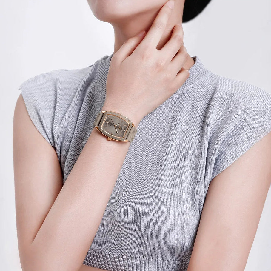 שעון אופנתי בעיצוב אלגנטי ומודרני, המשלב מראה יוקרתי ומתאים לכל אירוע.